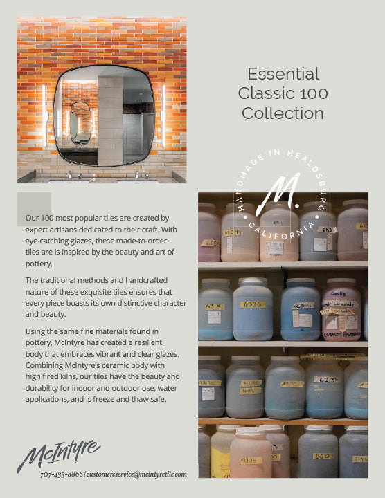 Please note that due to the special nature of our Archive Collection tiles, samples may be on extended lead times. If delayed, we will contact you with the expected shipping date. Our handmade ceramics will always have natural variation in color, texture, and sheen — and that’s part of their beauty.